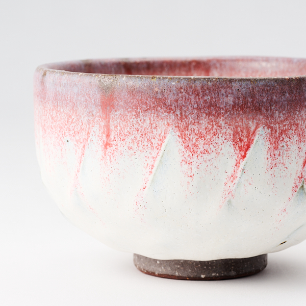 野菜のアーティチョークを思わせる形状の削りを一点一点当主による手作業で施した抹茶碗。