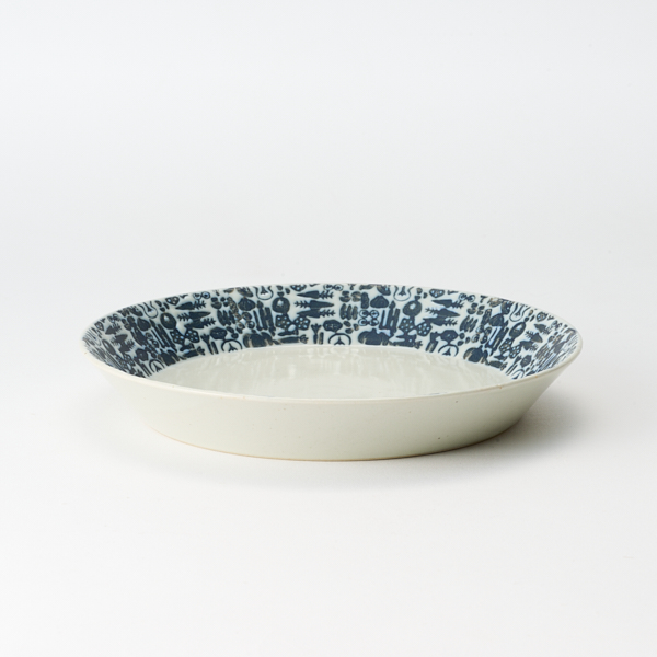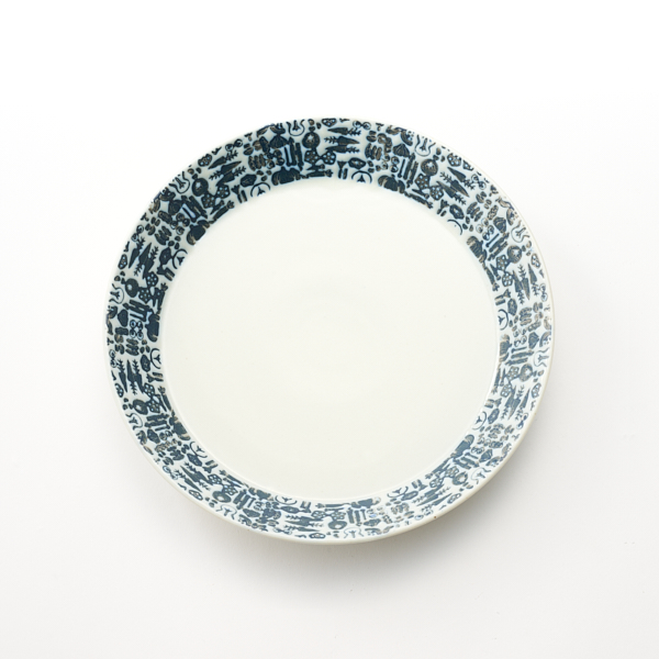 - 人参やレンコンなどのさまざまな野菜の柄が施された、アコメヤでは珍しい洋食にも合う波佐見焼の器。