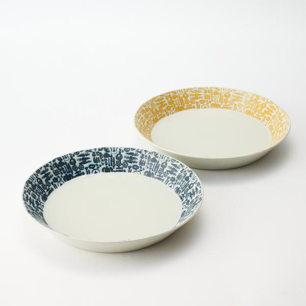 また、本シリーズは4種類全ての形状をオリジナルで設計しています。スタッキングのしやすさや生活に溶け込むアイテムにこだわり、毎日食卓に登場するお気に入りの器を目指しました。また、陶器の素材に20%程磁器の素材をブレンドして作ることで、陶器の温かみを残しつつ、しっかり硬質に焼けた器に仕上げています。カラーはそれぞれの形毎にネイビーとイエローの2色でご用意。ご自宅用としては勿論、ご結婚や新居祝いの贈り物にしても喜ばれます。