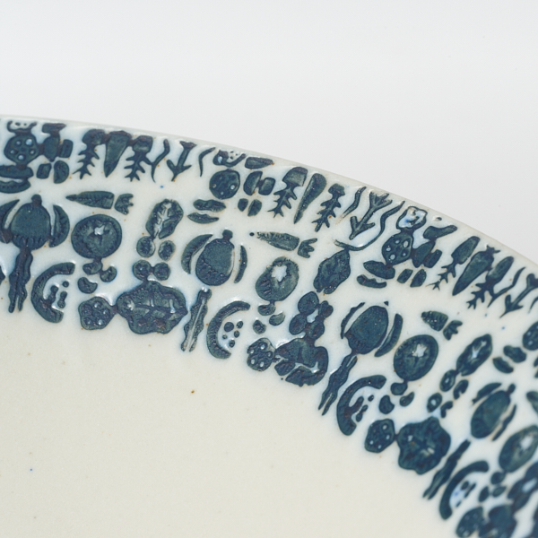 - 人参やレンコンなどのさまざまな野菜の柄が施された、アコメヤでは珍しい洋食にも合う波佐見焼の器。