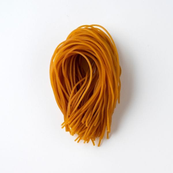 - ツルツルモチモチした新しい食感の米粉原料のグルテンフリー麺。