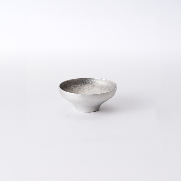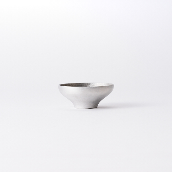 こちらの盃は、口当たりの良さとお酒の香りをより深く感じられる広い口径が特徴です。手にすっと馴染むフォルムも1点1点手作業で仕上げています。アルミの熱伝導率の高さを活かすという点で、冷酒を楽しむために使うのがおすすめです。