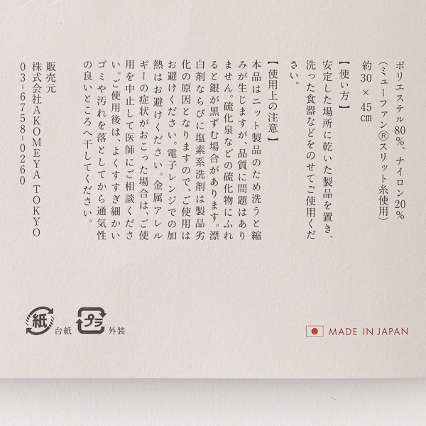 純銀の糸「ミューファン」を編み込んだ永続的に抗菌する水切りマット。