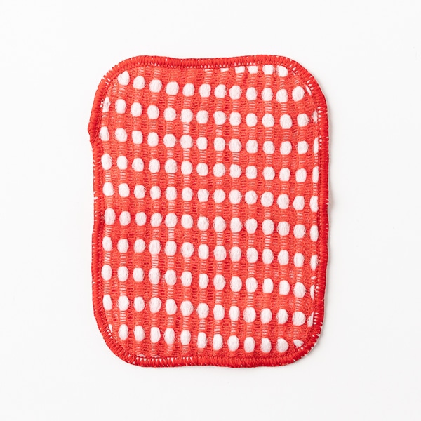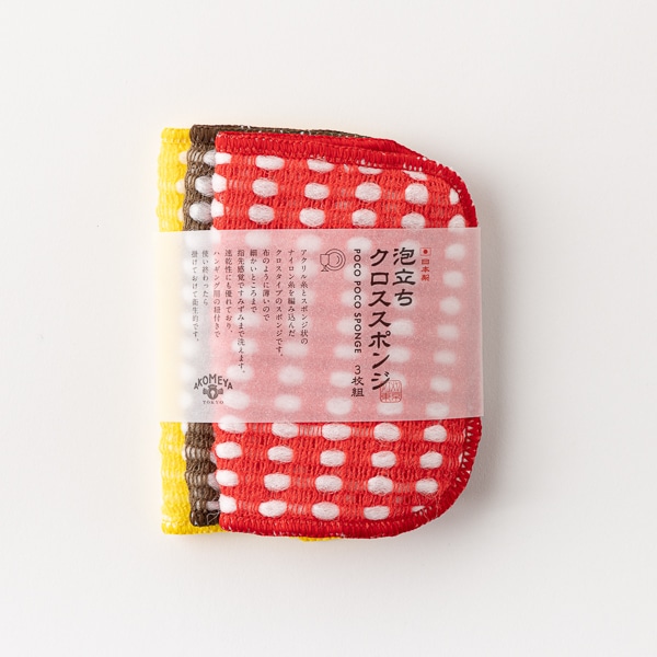 - アクリル糸とスポンジ状のナイロン糸を編み込んだ、クロスタイプのスポンジ3枚セット。