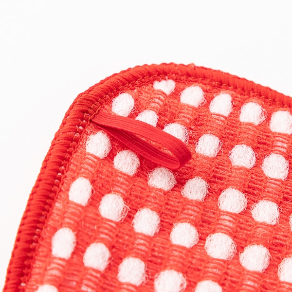 布のように薄いので、すみずみまで指先感覚で洗えます。速乾性にも優れており、ハンギング用の紐付きで使い終わったら掛けておけて衛生的です。