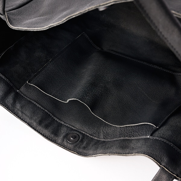 製品洗いによる独特な風合いのARAIは、初めは紙のようなパリッとした風合い。お使いいただくことで 艶感と柔らかさが生まれ、味わい深いバッグへと育ちます。