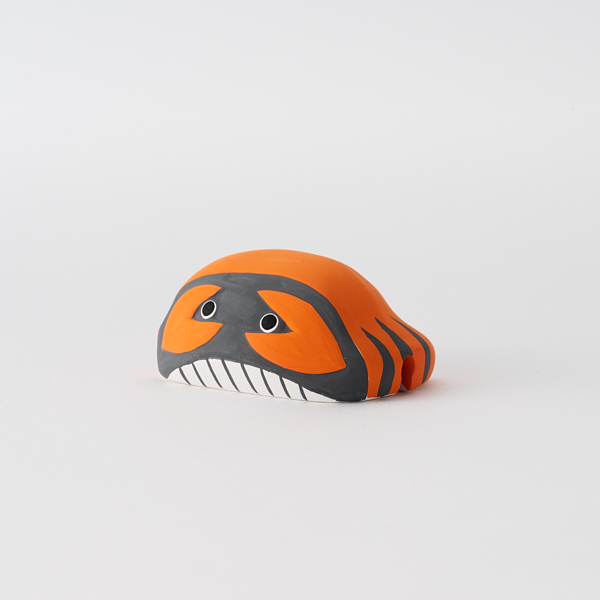 蟹は、Vサインに見えるハサミから勝利を呼ぶ縁起物としても親しまれてきました。また、たとえ嫌なことがあっても許すことができる人、苦しみに耐えられる人は一生を通して幸せに生きていけるという意味の「堪忍は一生の宝」という言葉にあやかり、辛抱強く我慢している姿をしています。