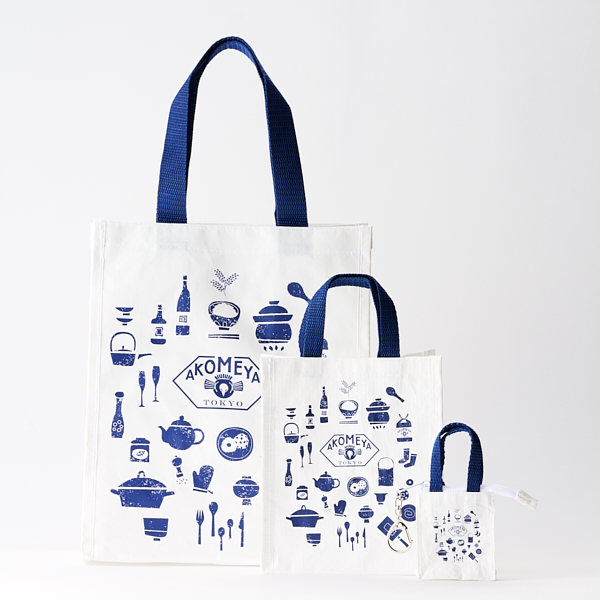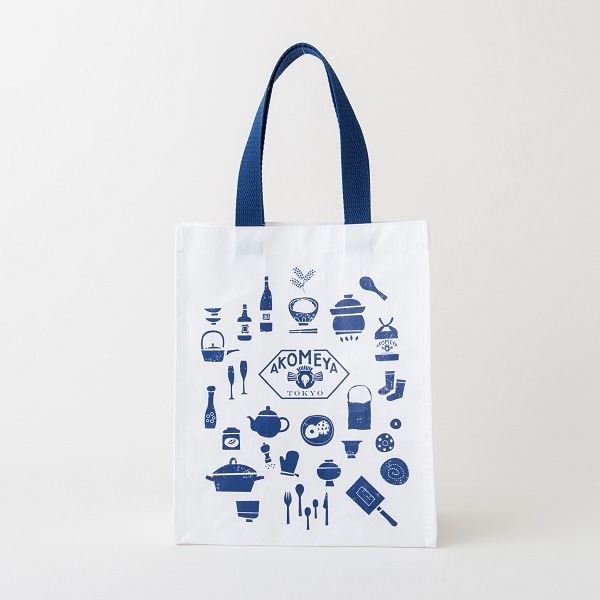 デザイン、絵柄は以前にAKOMEYA TOKYOのレジ袋で使用していた絵柄を使用し、見た目は小さいのに容量を大きく出来る様マチを広くとり、冷蔵品を入れた時に起こる水滴にも対応できる丈夫な素材で作りました。