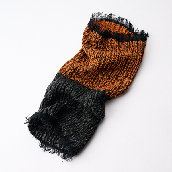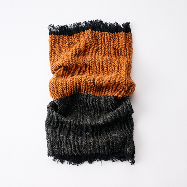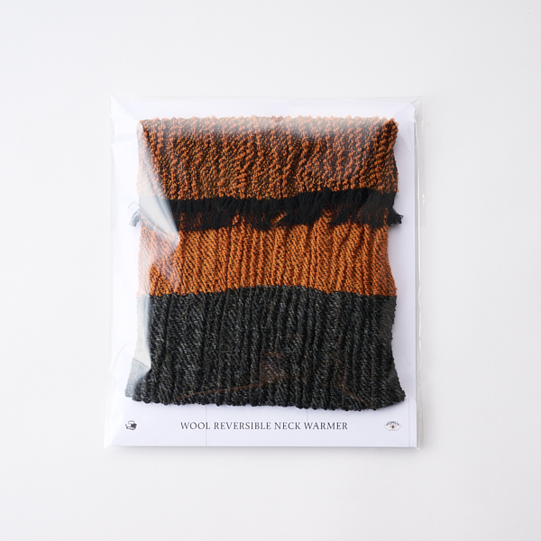 - なめらかなウールと強撚糸を使い二重綾織りを駆使し無縫製仕上げにこだわったやわらかな風合いのネックウォーマー。