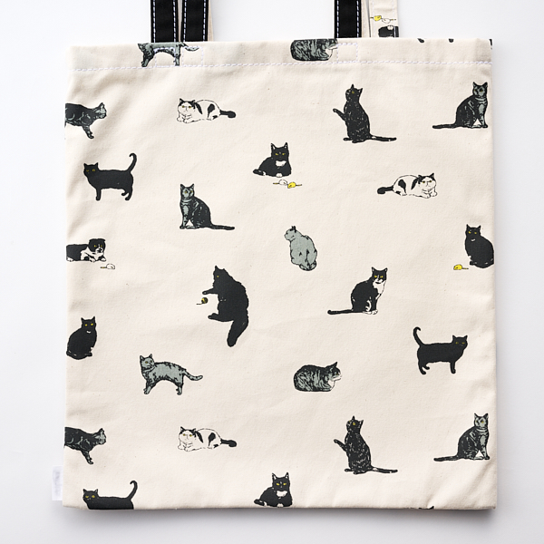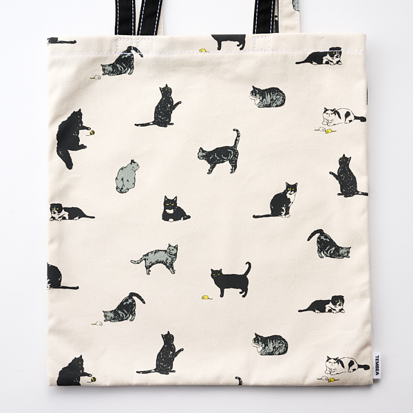 今シーズンのネコ柄は新たに描き下ろした新作です。毛糸玉やネズミのおもちゃの黄色がアクセントになっています。