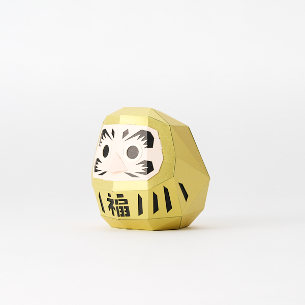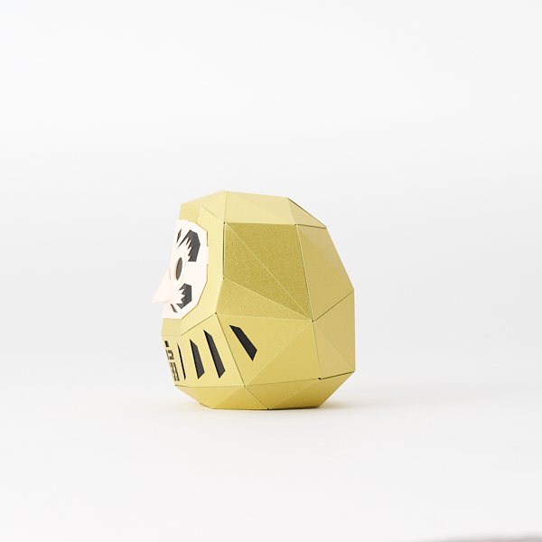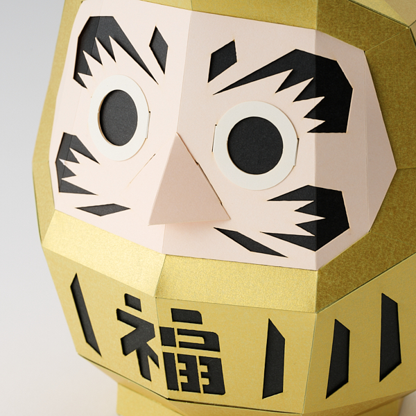 製品は既にレーザーカッターで精巧な切抜きと折目をつけた状態になっていて、のりしろの幅に合わせた両面テープも付属しているため、カッターナイフまたははさみのみ用意すればすぐに組み立て始められます。目の部分は筆やペンなどを使わずに抜き取るだけで黒目になります。