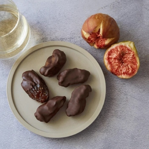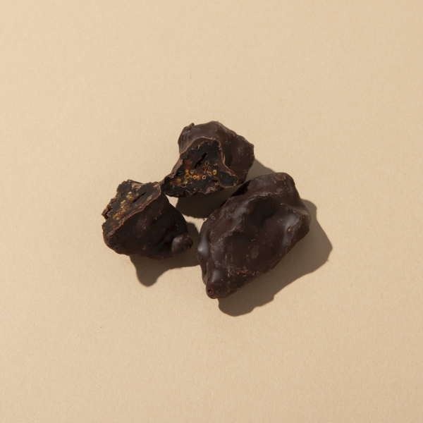 - セミドライフルーツに植物油脂不使用のチョコレートをコーティングした今までにない、ひとくちスイーツ。