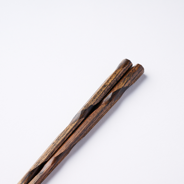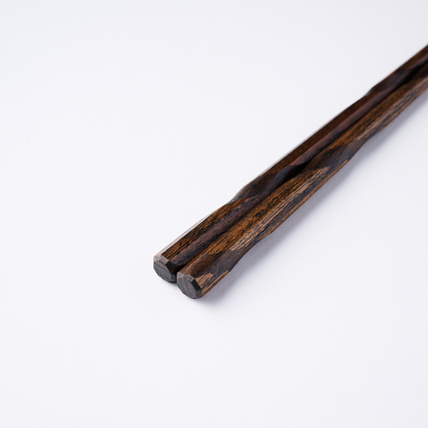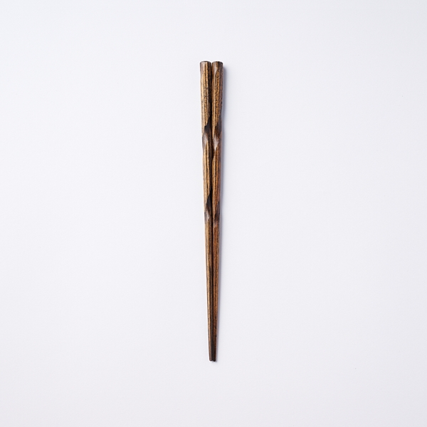 持ち手は八角形に螺旋状の削りを加え持ち易く、箸先はつまみやすい先角加工を施し、漆で仕上げた職人手づくりの箸です。