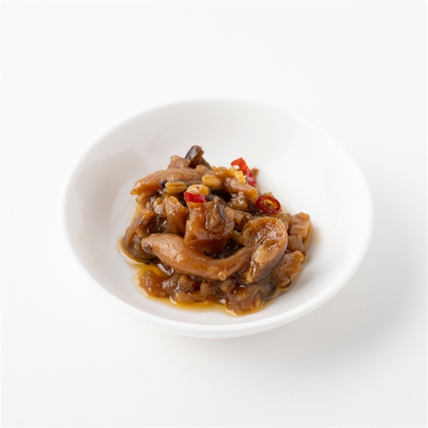 - ひらたけ(国産)、エリンギ、玉ねぎ、醸造なめみそ(小麦、水飴、食塩、その他)、ブナシメジ、砂糖、しょうゆ、食用なたね油、和風調味料(米発酵調味料、、水飴、魚介エキス、その他)、食塩、唐辛子/調味料(アミノ酸等)、酒精、(一部に小麦・ごま・さば・大豆を含む)