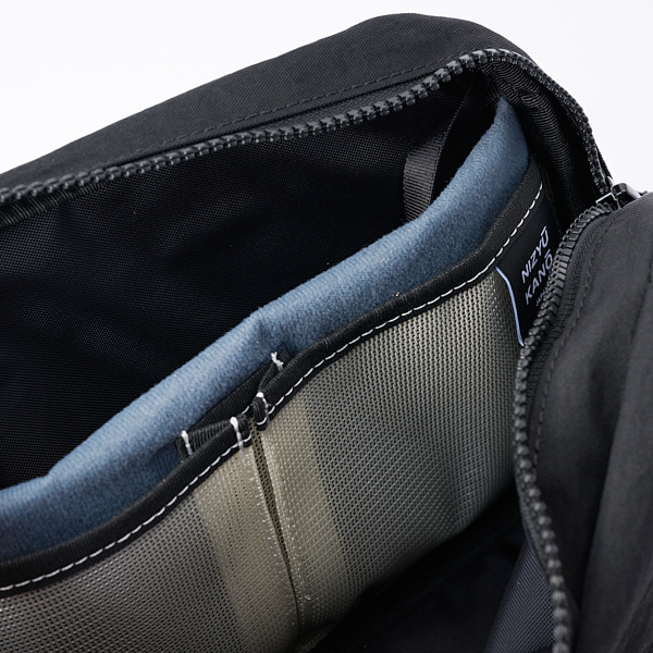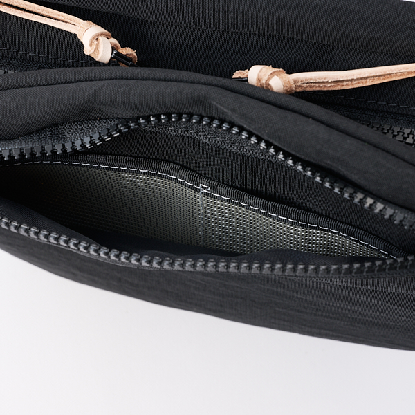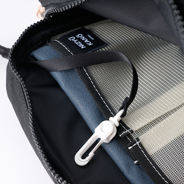 - 福井県産の国産ナイロンに塩縮加工、撥水加工を施したオリジナル生地を使用したボディバッグ。