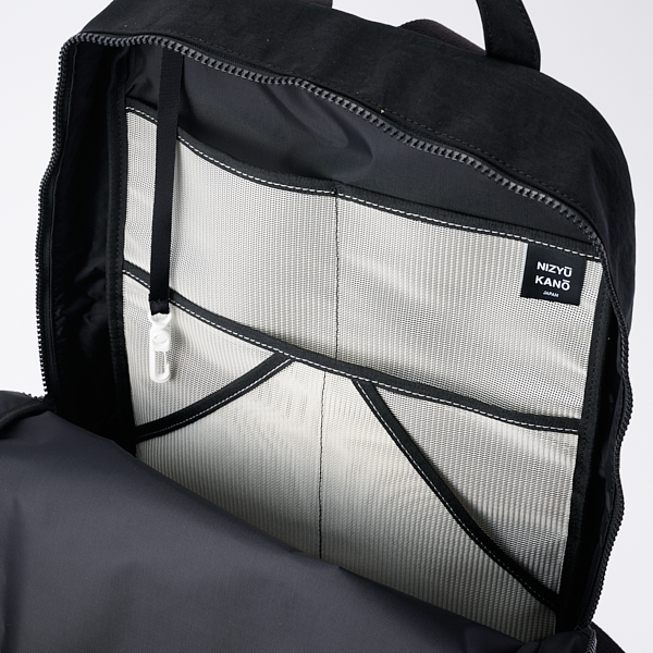 - 国産ナイロンに塩縮加工、撥水加工を施したオリジナルの生地を使用したミニマルデザインのリュック。