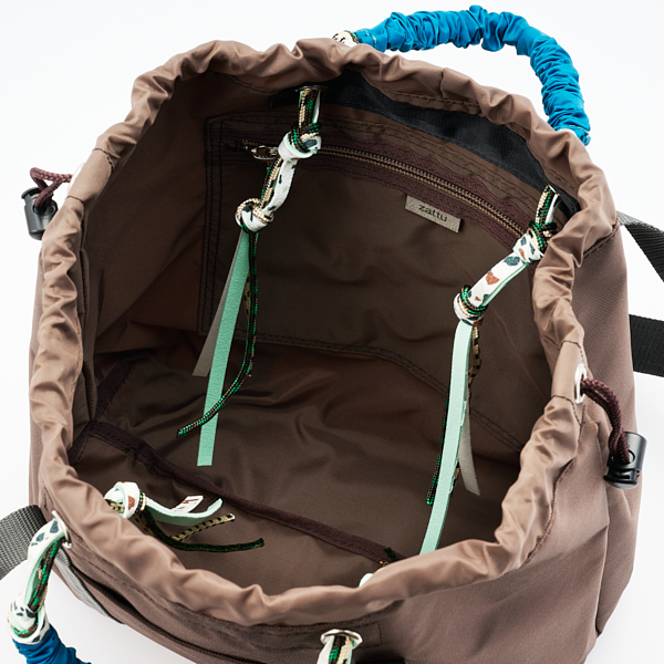 スクエアトートとしてだけでなく、巾着型バッグとして使用可能です。