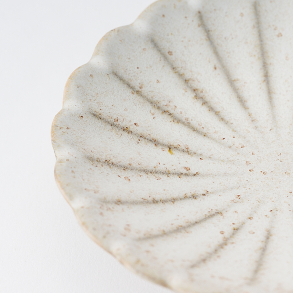 - 美濃焼の窯元、作山窯による菊形のしのぎが印象的な器。シックな佇まいでお祝いの席は勿論、日常の食卓にも馴染みます。