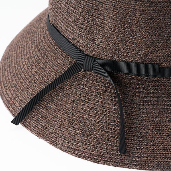 - 細めの黒リボンが上品で落ち着いた印象のハット。