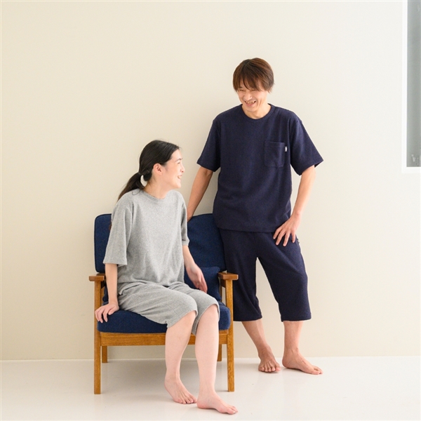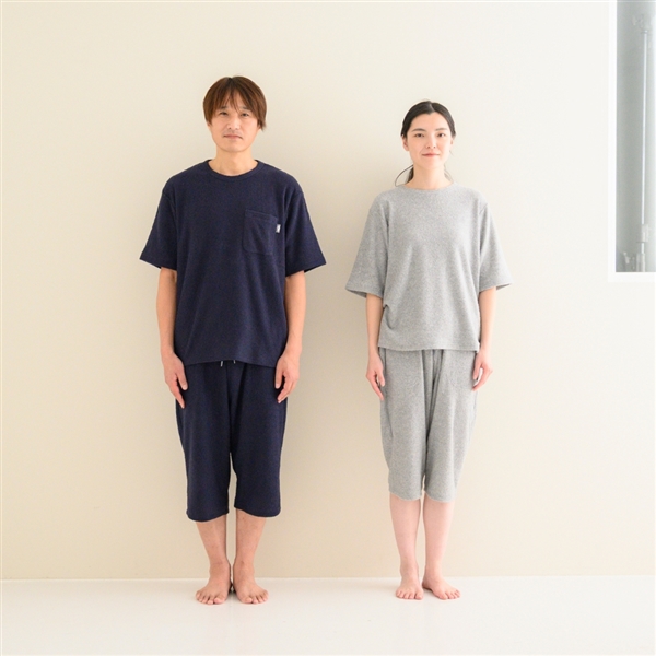 - 希少なソデス機で編み上げた両面パイル地のルームウェアシリーズ。