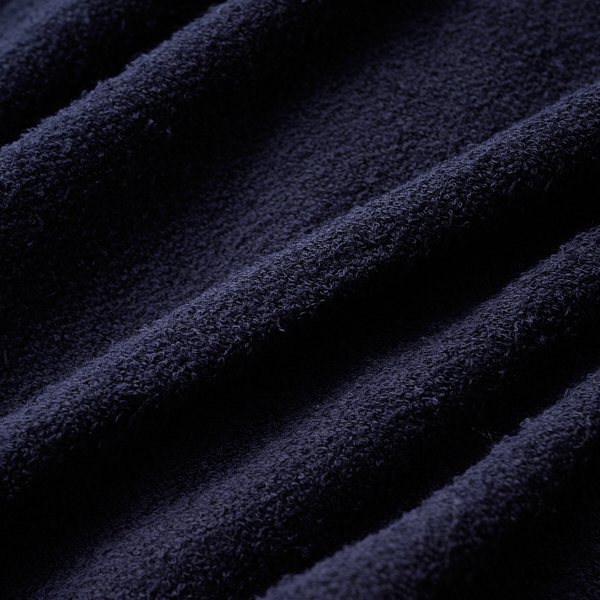 希少なソデス機で編み上げた両面パイル地はふんわりと柔らかく、極上のバスローブのような肌ざわりで心地良く身体を包みます。伸縮性もあり、吸水性・吸湿性に優れており、ルームウェアに最適な素材になっています。