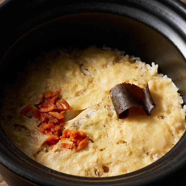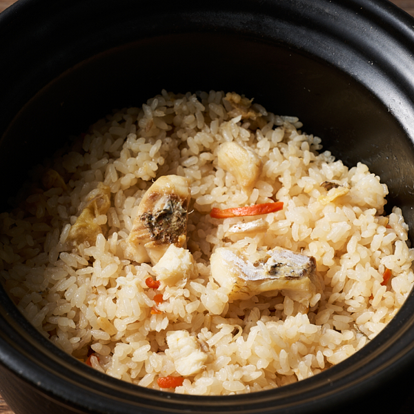 鯛のアラからとった濃厚な出汁と、ニンジン、昆布、松山あげ、鯛の切身を炊き込んで、旨味たっぷりの本格的な鯛めしをお楽しみください。