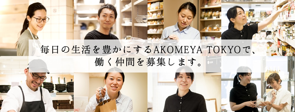 たとえば一口に「醤油」といえど、人それぞれ育った環境や文化によって味わい方は異なります。その異なる味覚・感覚を柔軟にとらえて、お客さまへご提案する。特に、AKOMEYA TOKYOの顔ともいえるお米のコーナーでは、味だけでなく炊き方についてまで、お客さまと意見交換をすることもあります。ただ販売するだけではない、もう一歩踏み込んだ接客を楽しめる空間です。そのため、幅広い年齢・環境の人材を求めています。