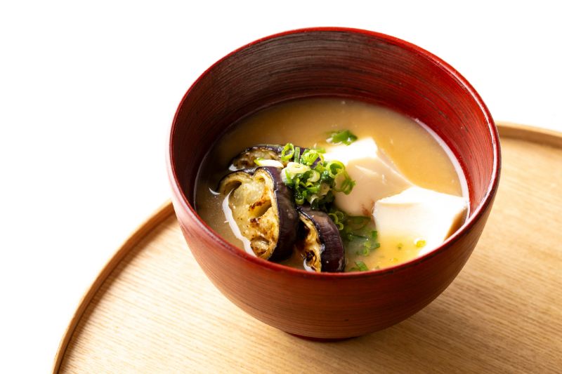 【万能出汁】焼き茄子と豆腐の味噌汁