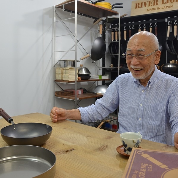 岡山さんはキッチン雑貨を扱う会社の創業に関わった際、『リバーライト』のフライパンに出合いました。リバーライトのもの造りに関する姿勢と製品のデザイン及び品質に惚れ込んだ岡山さんは、やがて『リバーライト』の経営に参加。長年流通に携わった経験を生かし、堀江さんを支え、市場を開拓していきました。こうして、リバーライトのフライパンは、世の中に知られ、評価されるようになったのです。後年、堀江さんが亡くなった際には、古くからの社員に請われて岡山さんが社長職を受け継ぐこととなりました。