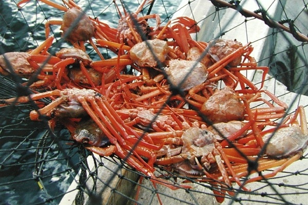 蟹の加工にもこだわりがあります。蟹は何も処理をしていないと血液が反応して墨のように真っ黒になってしまうのでリン酸塩に漬けるのですが、漬けすぎると蟹の色が抜けてしまうため、漬ける時間を可能な限り短時間にして水洗いをしています。