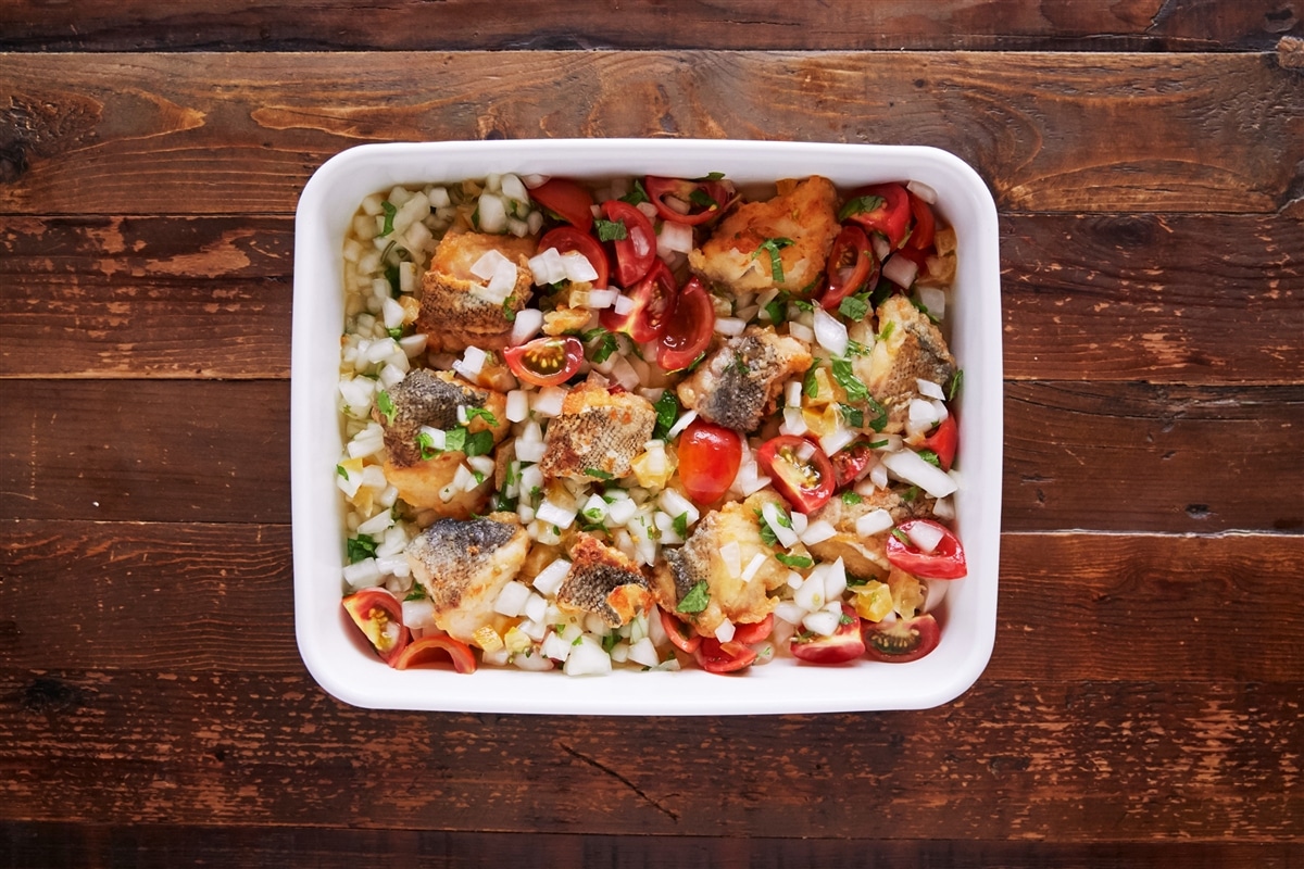 揚げた白身魚とミントのセビーチェ