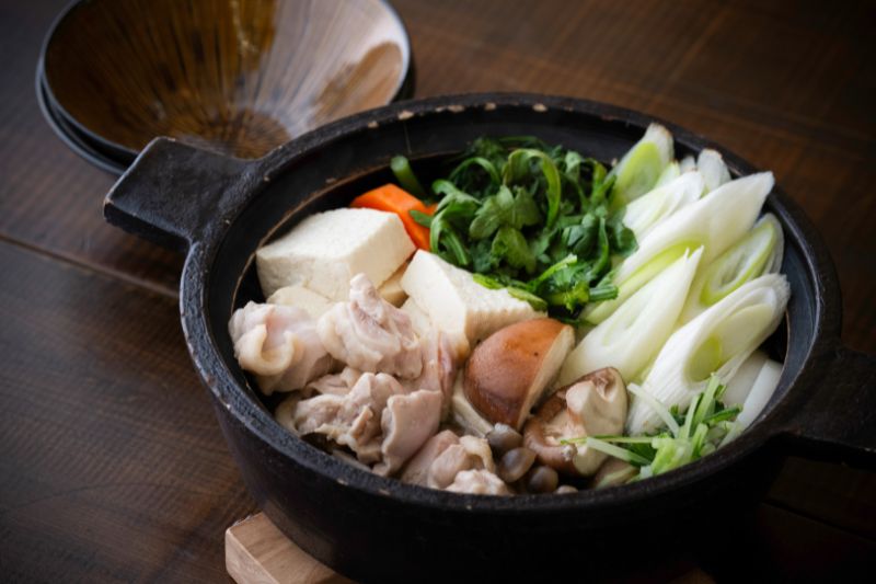 ④ お好みの野菜や肉を鍋に入れて③の出汁を注ぎ、火にかけて具材に火を通したら完成。